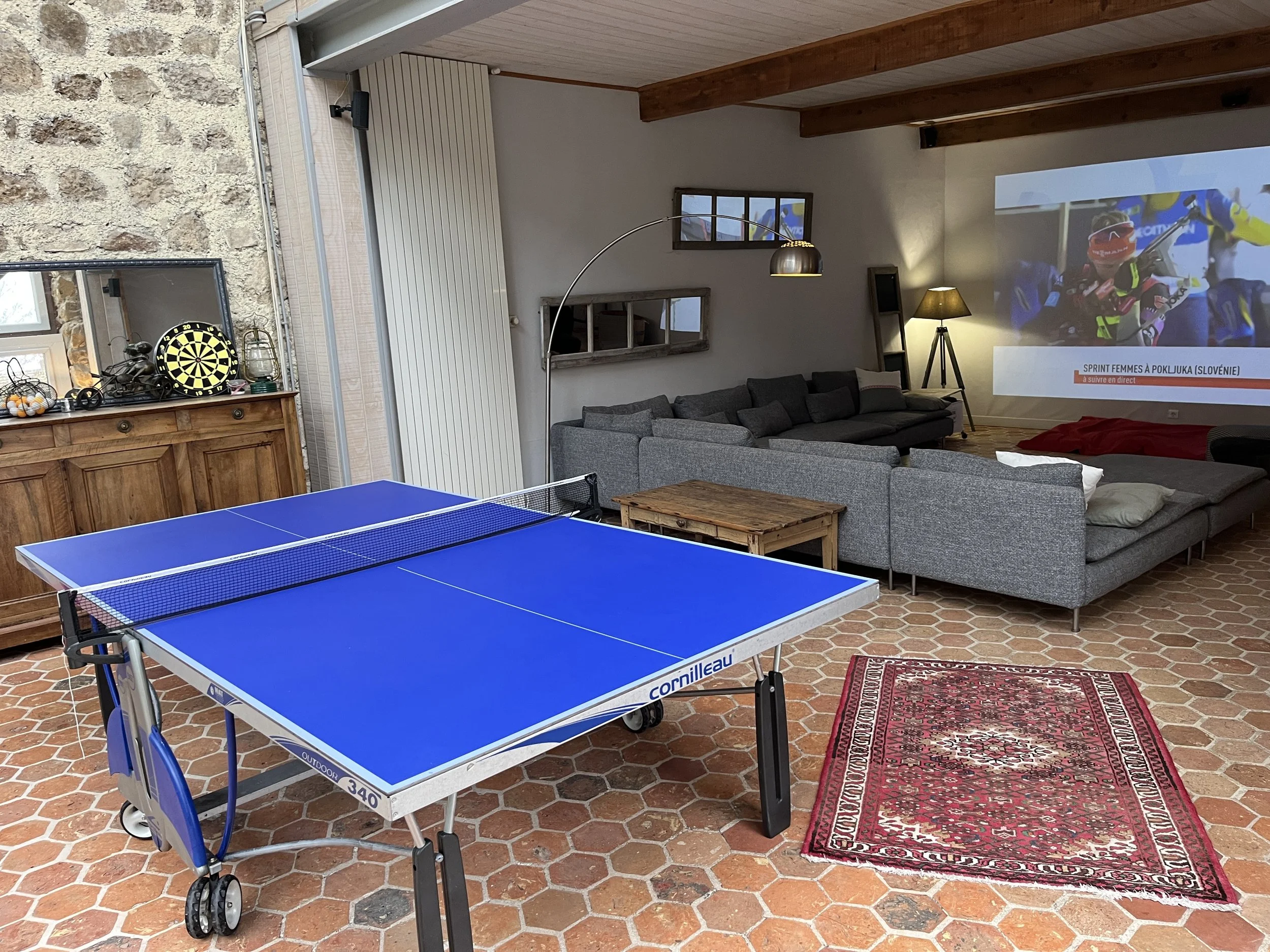 Une grande salle pouvant se transformer en véritable salle de jeux avec une table de Ping Pong, un vidéo-projecteur avec système audio et un jeu de fléchettes à disposition